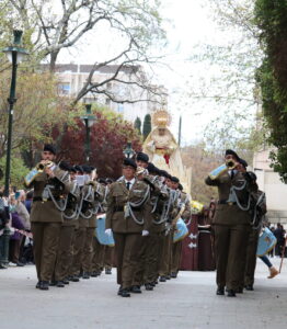 Desde esta misma Semana Santa, la del 2022, la Banda de Guerra de la Brigada Aragon I, la acompaña en nuestra Procesión Titular del Jueves Santo.