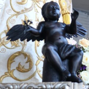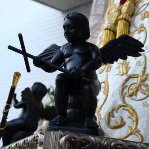 En abril del 2022, se incorporan dos angelitos tallados en ébano, uno con una cruz y otro con tres clavos. Proceden de Mali y realizados en Bamako.